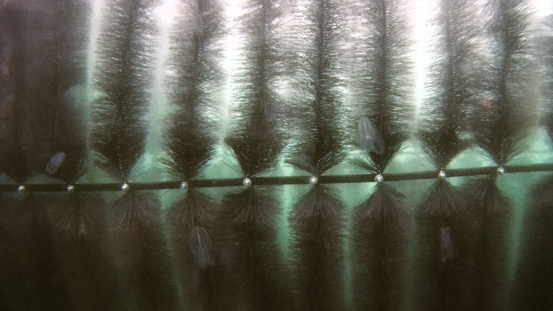 Børstekassettene heises lett opp for rengjøring, systemet tilpasses lokale forhold og beskytter oppdrettslaksen kontinuerlig uten å forstyrre driften.